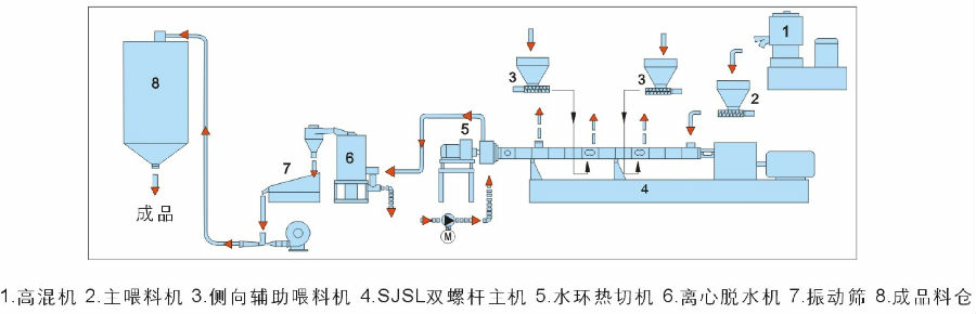1、EVA、SBS類彈性體造粒機:EVA、SBS類具有優(yōu)異的回彈性能,廣泛用于各類包裝、建筑、工具、密封等產業(yè)中。通過雙螺桿混煉造粒后更具有各種優(yōu)異的特殊性能,采用水環(huán)模面或水下切粒方式是其理想的選擇。