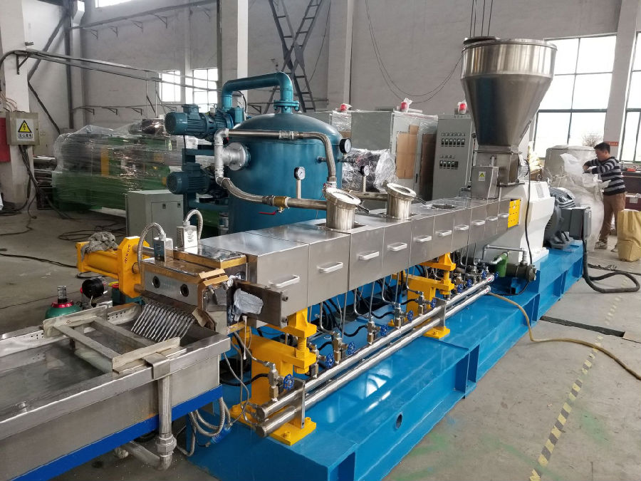 永杰雙螺桿造粒機由兩個嚙合、同鄉(xiāng)平行共轉(zhuǎn)的螺桿組成,螺桿安裝在封閉筒體的花鍵軸上。由于螺桿元件和筒體設(shè)計范圍廣,可根據(jù)工藝要求設(shè)置螺桿原件型材和工藝功能的各種組合。因此,雙螺桿擠出機能夠完成輸送、壓縮、混合、蒸煮、剪切、加熱、冷卻、抽吸、成型等功能,并具有較高的靈活性和充分混煉化合物的能力。